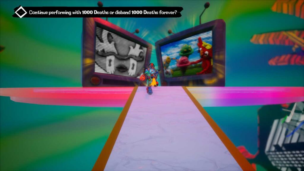 داستانهای مرتبط و ریشهداری که در بازی «1000 Deaths» بر آنها تمرکز شده است. مثلا میتوانید وایو را انتخاب کنید که با ماکسی به منطقه جولیوود نقل مکان کند و با این کار، از مزایای زندگی در یک شهر بزرگ بهرهمند میشود. او همچنین باید برای پرداخت اجاره خودش و ماکسی، بسیار سخت تلاش کند زیرا ماکسی از او سوءاستفاده میکند. شخصیتهای دیگر با معضلات عاطفی مشابهی روبرو هستند، باید بین کار با یک دوست یا دنبال کردن مسیر خود، یا تصمیم گیری در مورد اینکه آیا راه خود را برای عاشق شدن باز کند یا آن احساسات را دفن کند، یکی را انتخاب کنند. با وجود تمام عجیب و غریب بودن کیهانی و تمام ظاهر زیباییشناختی وحشی آن، به طرز چشمگیری واقعی است.