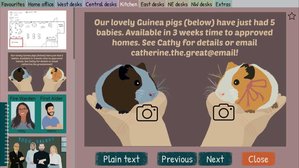 مدت زیادی از آخرین باری که بازی Roottrees را انجام دادم میگذرد، اما فکر میکنم فضای معاصر موجود در بازی A Case of Fraud باعث شد احساس قویتری نسبت به شخصیتهای آن داشته باشم – در حالی که در «Roottrees» اغلب احساس میکردید که یک بایگان هستید که در حال مرور تاریخ هستید، تاریخی که مدتها از آن جدا بودهاید، اما در اینجا متوجه شدم که در مورد افراد در مورد چیزهای نسبتاً بیضرر نظر میدهم. برای مثال، رنجش خفیفی را که از آن آدم شلختهای که لکههای قهوه روی کارت ویزیتش مانده بود و آمار فروش ضعیفتری نسبت به اعضای جوانتر بخش خود داشت، احساس کردم، یا تاسفی را که برای یک فرد بیچاره به نام پیتر احساس کردم که مجبور بود ۸۰ ساعت در هفته در یک شغل شرکتی افتضاح کار کند.