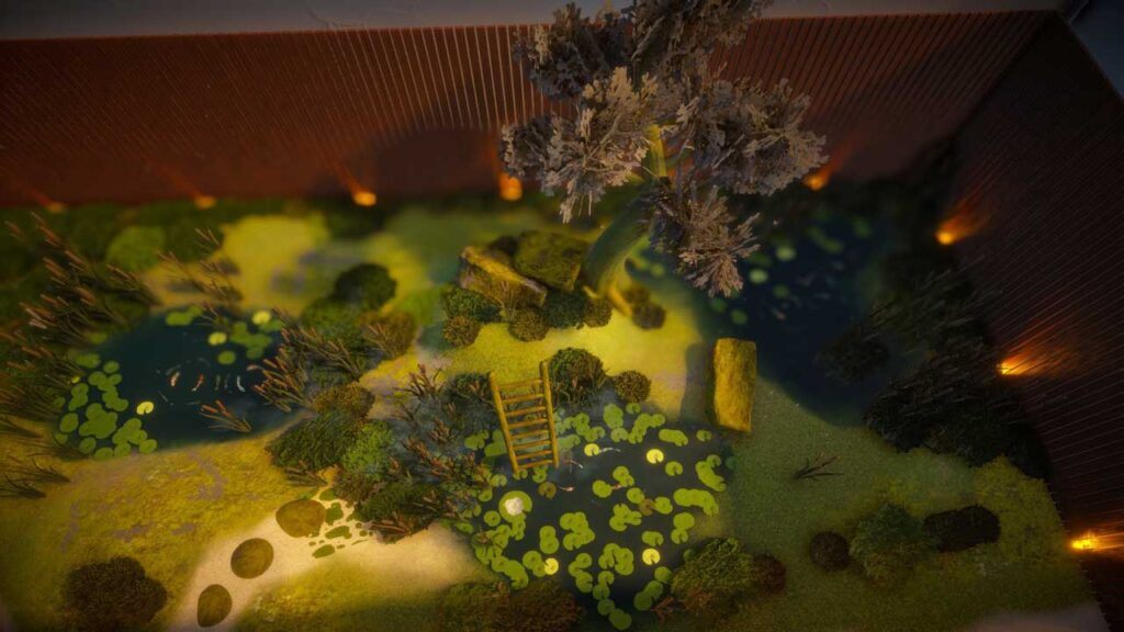 با تنظیم همه چیز، میتوانید آزادانه وسایل، گیاهان، درختان، سنگها و حیوانات را قرار دهید. من شخصاً عاشق کرمهای شبتاب شدم. اینکه میتوانستم آنها را بگذارم و چشمک زدنشان را تماشا کنم، به من الهام بخشید تا یک صحنه شبانه بسازم و جادویی بود. تعداد محدودی از وسایل برای انتخاب وجود دارد، اما انتخاب به اندازه کافی متنوع است که نباید تکراری به نظر برسد. با امکان تغییر رنگها و تغییر اندازه چیزها، آزادی بیشتری برای خلق دقیقاً همان چیزی که میخواهید، خواهید داشت.