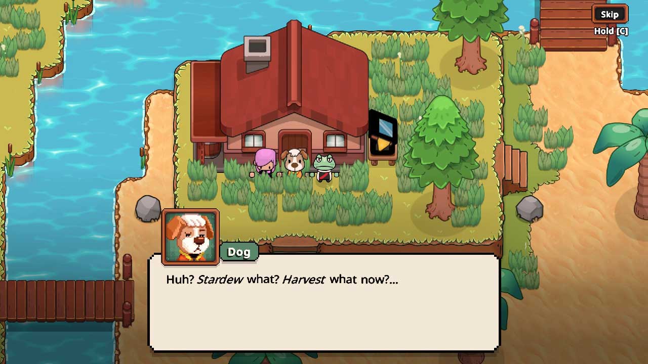 شما در داستان این بازی به نوعی یک زندگی ساده را دوباره کشف می کنید. در رختخواب از خواب بیدار می شوید تا توسط دوست جدیدتان که یک سگ است، مطلع شوید که شخصیت شما در شبیه سازی مکانی به نام “زمین” بوده است و اکنون در دنیای Everafter Falls هستید. شما خود را در دهکده ای زیبا می یابید که توسط مناظر زیبا و گیاهان پر جنب و جوش احاطه شده است. این دهکده خانه جامعه ای از همسایه های تغییر شکل دهنده است که هر کدام شخصیت و ویژگی های خاص خود را دارند. با نگاهی به تصاویر بازی متوجه می شوید که این عنوان از بازیهای هم سبک مشابهی الهام گرفته است. حتی بر خلاف بازیهایی مانند Stardew Valley و Animal Crossing در چند دقیقه پس از شروع خود، زمان را برای نامگذاری تلف نمی کند و جنبه طنز خود را نشان می دهد.