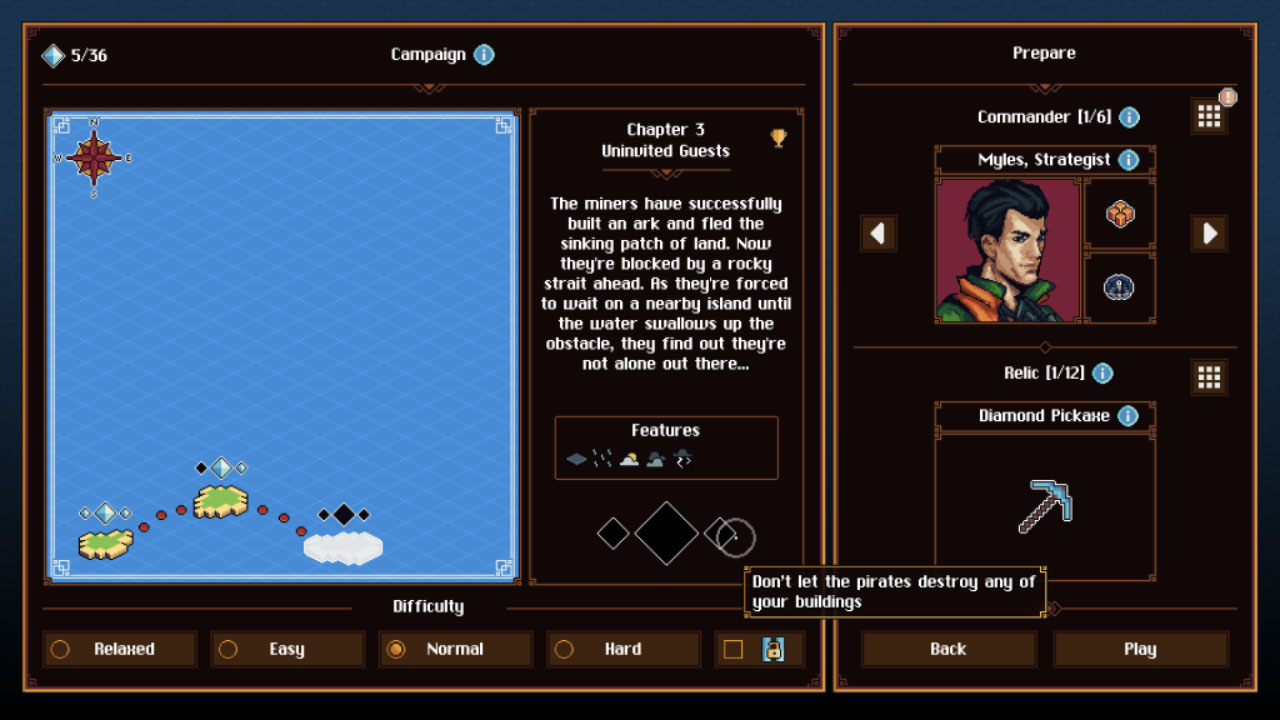 یک شکایتی که میتوانم بگویم از Flooded دارم این است که برای باز کردن قفل دو حالت quick play حتما باید داستان را پیش ببرید. من جنبه آموزش بازی را درک میکنم، اما اگر بخواهم دیگر حالات بازی را تجربه کنم، چرا نباید از همان ابتدا امکان انجام این کار وجود نداشته باشد؟ به علاوه، یک بخش «راهنما» در منوی توقف وجود دارد که هر آموزشی را که از همان ابتدا از طریق کمپین انجام میدهید در اختیار شما قرار میدهد. من تیم توسعه دهنده را بابت قراردادن چنین ویژگی هایی تحسین می کنم و برای آنها آرزوی موفقیت دارم.