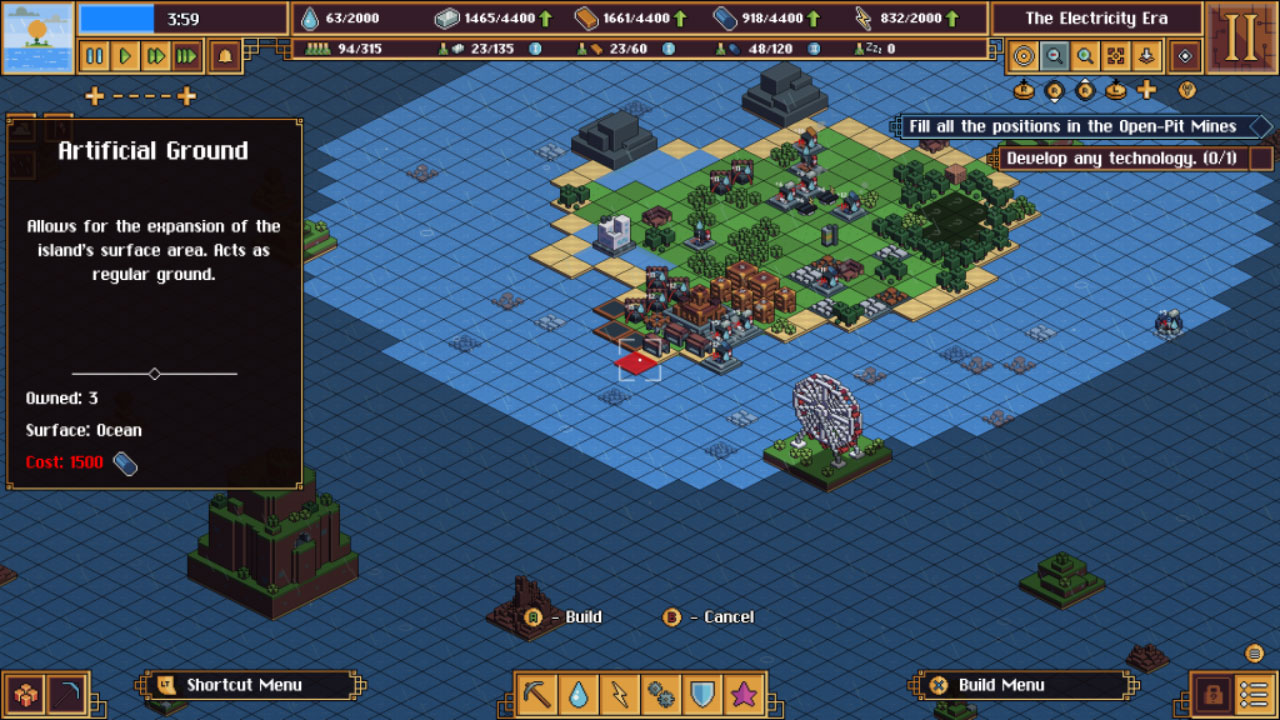 از طریق این کمپین، مأموریتهایی برای شما تعیین میشود که بتوانید «عصر» خود را پیش ببرید، هر کسی که با Civilization آشناست با این مکانیزم کاملا اشناست که در آن شما باید برای ساختن بهتر و در کل کارآمدتر شدن، پیشرفتهتر شوید و به اصطلاح به دوره ها یا عصرهای جدید بروید. در حین پیشرفت در دوران خود، همچنین میتوانید قفل perk ها را باز کنید، اینها ارتقاهایی هستند که میتوانید انتخاب کنید و سپس خریداری کنید تا بر اساس سبک بازی خود شانس بیشتری برای پیروزی به خود بدهید. این امتیازها مواردی مانند کاهش هزینه ساخت و ساز، یا ایجاد فرصتی برای احداث زمین جدید به شما می دهند تا دفعه بعد که تایمر تمام شد، منجر به وقوع سیل نشود. هر کدام از این امتیاز را می توان پنج بار ارتقا داد و بدیهی است که هر بار ارتقا، عملکرد آن را کمی بهتر می کند.