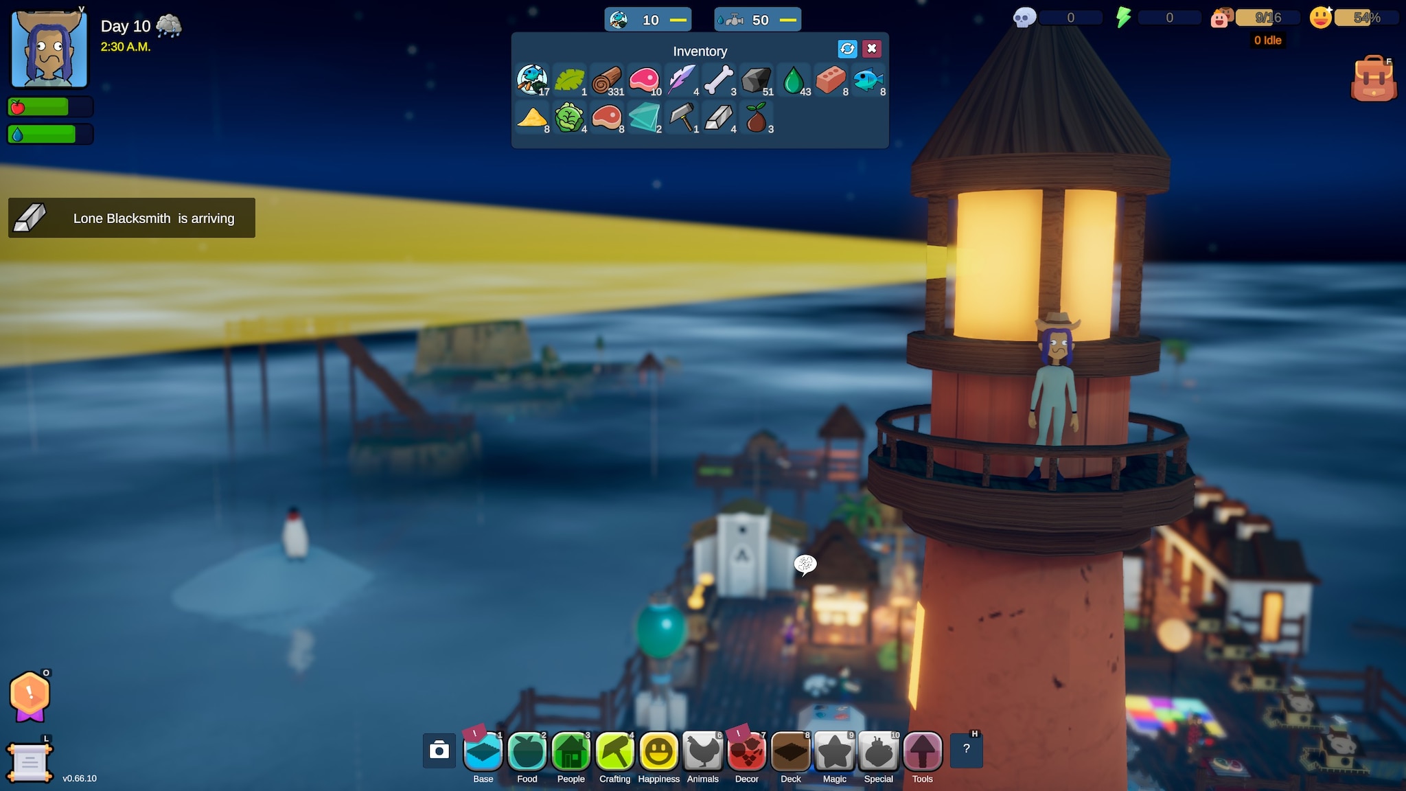 در ابتدای بازی بقا کار نسبتاً آسانی است، به خصوص زمانی که فقط خودتان باید از آن مراقبت کنید. هنگامی که اصول اولیه را برای زنده ماندن مرتب کردید، وقت آن است که جاه طلبی های خود را گسترش دهید. تمام کارهایی که در ابتدا به صورت دستی انجام می دهید در نهایت می توانند خودکار شوند. برای این کار، غریبههایی را استخدام میکنید که میخواهند به بهشت شناور شما روی اقیانوس بیایند و تا زمانی که آنها را سیر و سرگرم می کنید، خوشحال می شوند که به شما کمک کنند. در ابتدا، شما به سادگی به آنها دستور می دهید تا کارهای کوچکی را که نمی خواهید مزاحم شما شوند را مکانیزه کنند؛ مانند پمپاژ و تقطیر آب و ذخیره آن در مخزن آب. در حالی که تا زمانی که شما وسایل لازم را فراهم کنید به نیازهای خود رسیدگی می کنید، فقط باید گرسنگی و تشنگی را مدیریت کنید.