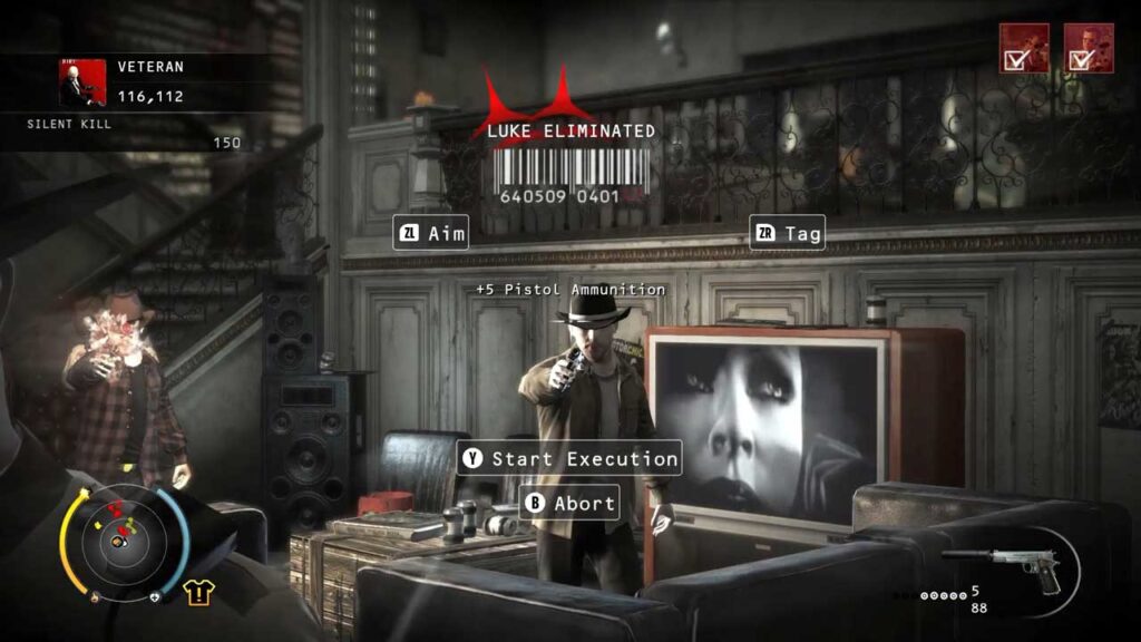عملکرد شما در طول بازی دائماً در حال ارزیابی است و هر بخش از یک ماموریت رتبهبندی خاص خود را دارد. بعضی از مراحل باعث میشد که به عنوان یک قاتل خاموش پاداش بگیرم، در حالی که بعضی وقتها با بیدقتی مراحل را طی میکردم، آلارمها را به صدا در میآوردم و ردی از اشتباهات را پشت سر میگذاشتم. سیستم امتیازدهی، شما را تشویق میکند تا ماموریتها را دوباره انجام دهید تا رویکردتان را کامل کنید و به بازی لایهای از طول عمر حتی در طراحی خطیاش میدهد. همچنین خوب بود که دیدیم Easter Eggها و ترورهای وحشیانه به طور یکپارچه به Switch منتقل شدند.