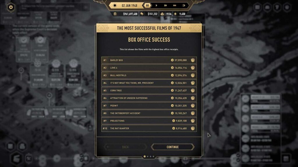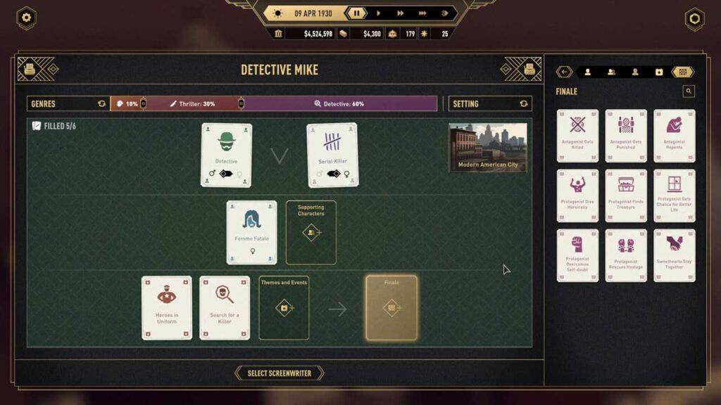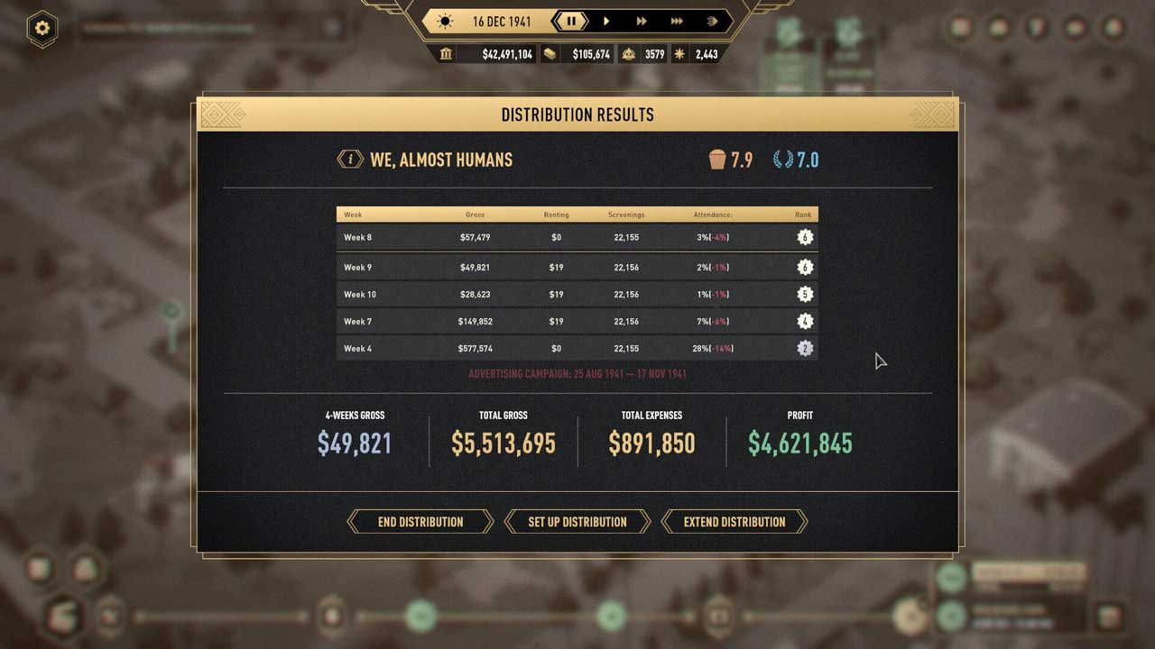 بخش گیمپلی واقعی بسیار عمیق است، شما روی همه چیز کنترل دارید که در ابتدا عالی است. بعداً وقتی فرمولی را پیدا کردید که همیشه کار میکند، فقط کلیک کردن روی دکمهها میشود، میدانید که آنچه را که میخواهید به شما میدهد. در واقع شما یک رئیس هستید که با کارمندان سر و کار دارید، منابع را مدیریت میکنید، بر فیلمسازی نظارت دارید و بازاریابی را برنامهریزی میکنید.