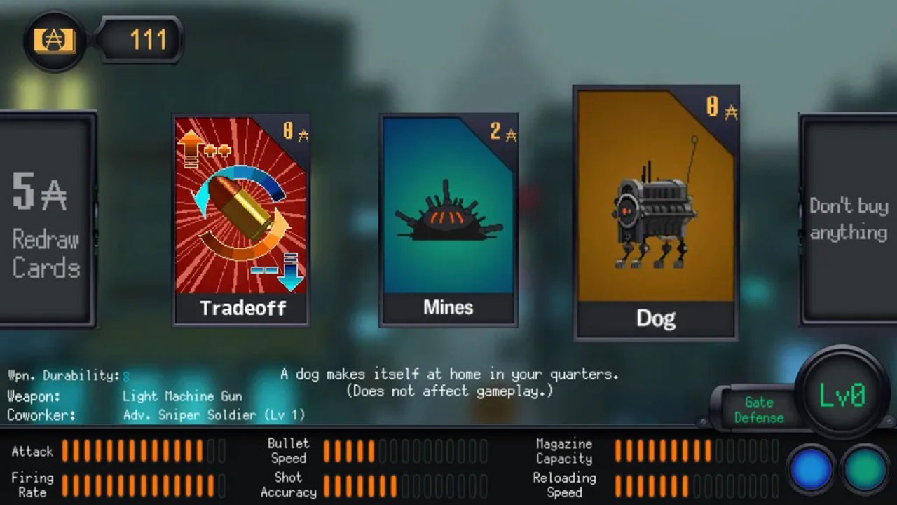 همچنین این بازی از نوعی سیستم کارتی استفاده می کند که شخصیت خود را با کارت ارتقا می دهید. این کارت ها برای ارتقا سلاح ها، شخصیت ها، قدرت ها، رویدادهای تصادفی و غیره استفاده می شوند. همچنین یک حالت چالشی کمی تنبیهکنندهتر را برای کسانی که به دنبال چیزی سختتر هستند ارائه میدهد. با این حال، من احساس می کنم که بازی کمی بیش از حد آسان بود. با اینکه حالت چالش سخت تر است، اما حالت اصلی بازی اصلا سخت نبود. فکر می کنم نهایتا فقط چهار بار نیاز باشد تا یک مرحله را دوباره امتحان کنید.