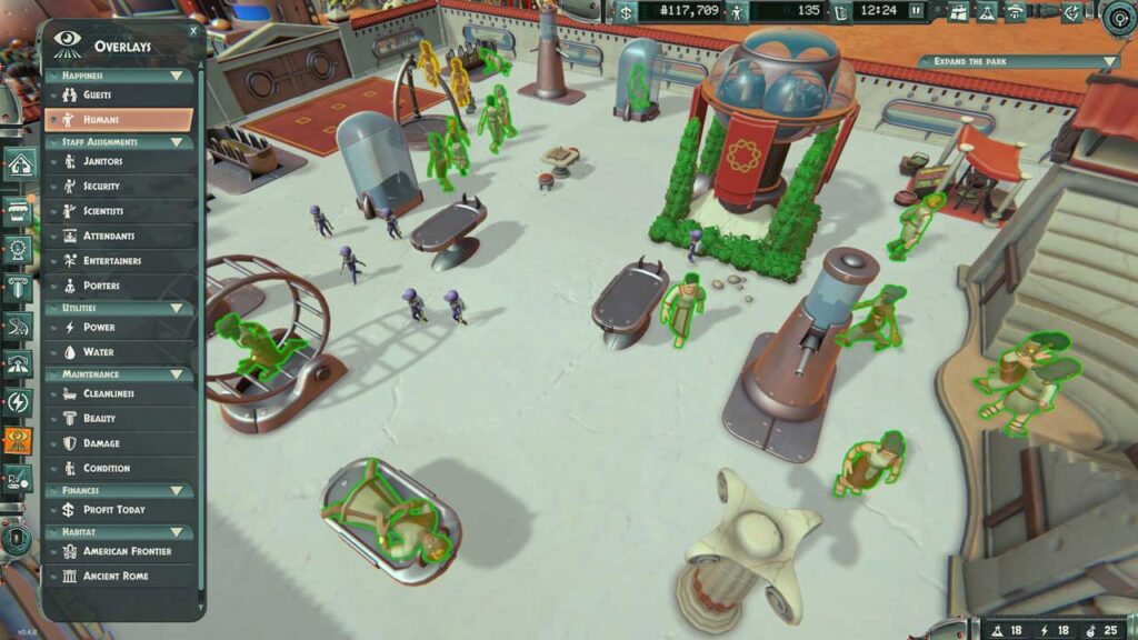 در این بازی باید امپراتوری تفریحی مریخی خود را بسازید، انسان‌ها را از سنین مختلف در زمان خودشان بربایید و تصمیم بگیرید که آیا آنها را در زیستگاه طبیعی خود مطالعه کنید یا برای سرگرمی مهمانان خود، آنها را در معرض آزمایش‌های پیچیده قرار دهید. این یک بازی عجیب و غریب است و با هر عنوان مشابه مدیریت پارک‌ که قبلاً تجربه کرده‌اید، متفاوت است. تنها سوالی که مطرح می شود، این است که برای سرگرم کردن مریخی‌ها تا کجا پیش خواهید رفت؟