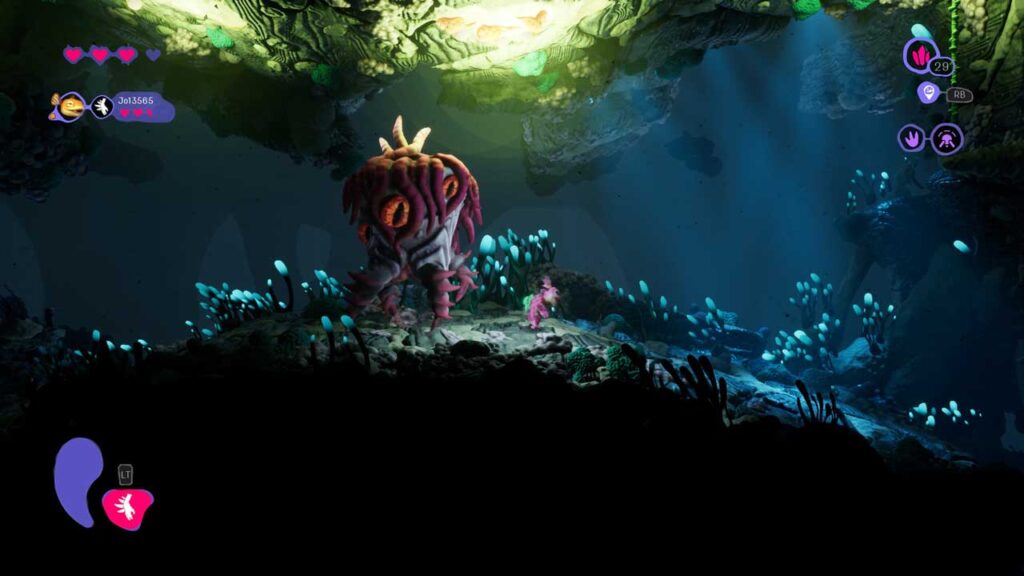 کاوش در دنیای Mother Machine نیز فقط به دلیل بیگانه بودن آن می تواند جذاب باشد. در ابتدا، شما واقعاً مطمئن نیستید که گیاهان یا حیوانات چه کار می کنند و بنابراین مقدار مشخصی از ترس با نزدیک شدن به هر موقعیت جدید به وجود می آید. برای مثال، من با وسواس سعی کردم هر چیزی را که می توانم با پنجه های کوچک و کثیفم بخورم، که منجر به کشف راب های سلامتی، انواع توت های تقویت کننده استقامت … و میوه هایی که در شکمم منفجر شدند و به من آسیب رساندند، شد. به همین ترتیب، با پیشرفت من در بازی و آشنایی بهتر با الگوهای حمله آنها، برخی از دشمنان قابل پیش بینی تر و شکست دادن آنها آسان تر شد، در حالی که برخی دیگر مانند شکارچیان ترسناکی باقی ماندند که ترجیح می دادم به طور کلی از آنها دوری کنم.