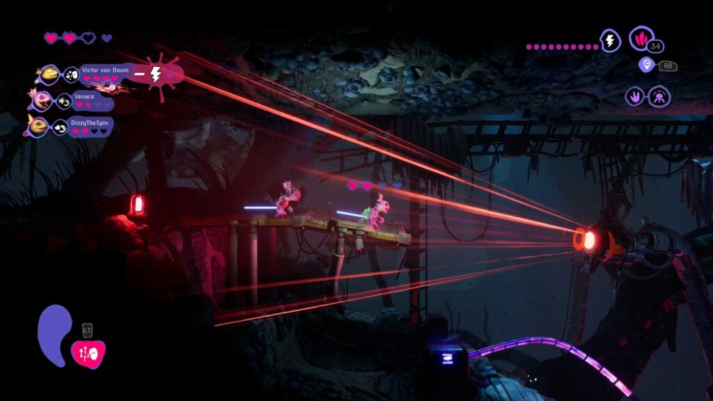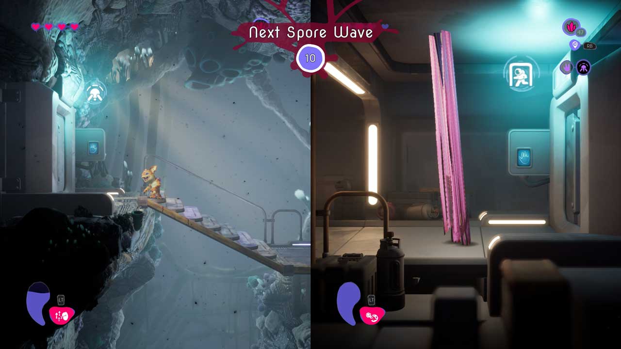 چیزی که تا این لحظه به آن اشاره نکردهام این است که Mother Machine دارای قابلیت Co-op است: حداکثر دو بازیکن در حالت اسپلیت اسکرین یا چهار بازیکن به صورت آنلاین می توانند به تجربه بازی بپردازند. این یکی از ویژگیهایی است که من در مورد آن اظهارات ضد و نقیضی دارم، عمدتاً به دلیل برخی تصمیمهای مشکوک طراحی. از یک طرف، بازی چند نفره می تواند سرگرم کننده و جذاب باشد، به خصوص در ماموریت هایی که باید به نقاط مختلف نقشه بروید. از طرف دیگر در بخش آنلاین اگر به تنهایی یا با دو بازیکن بازی کنید، میتوانید بیش از یک جهش ایجاد کنید، خوب است، اما میتوانم متوجه شوم که چرا توسعهدهندگان تصمیم گرفتند فقط به یکی اجازه انجام چنین کاری را داده اند.
