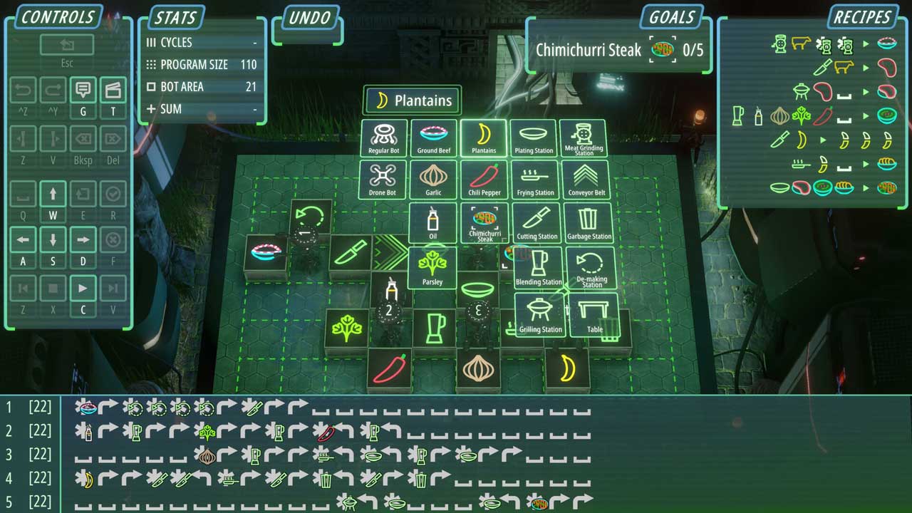 با وجود سادگی و فضای آزادی، هر مرحله و جنبهای از Neon Noodles برای همه ساده نخواهد بود. برای هر فردی، یک پاشنه آشیل در پازلها وجود دارد و برای من این پاشنه آشیل رباتها بودند. برنامهنویسی آنها میتواند یک کار کابوسوار باشد، که مستلزم برنامهریزی، آمادهسازی و بازنگری برای اصلاح نقصهای طراحی شما است. چیزهای سادهای مانند یک ورودی اضافی در یک جهت میتواند یک حلقه را خراب کند و اغلب شامل جابجایی داراییهای شما یا ضبط یک حلقه طولانیتر برای حل مسئله میشد. سختی بیشتر (به دلیل کمبود هوش من یا روالهای برنامهنویسی پیچیده) لایهای از ارزش تکرار را به همراه کنجکاوی ایجاد کرد که بازی را از حالت بیروح متوقف میکرد.