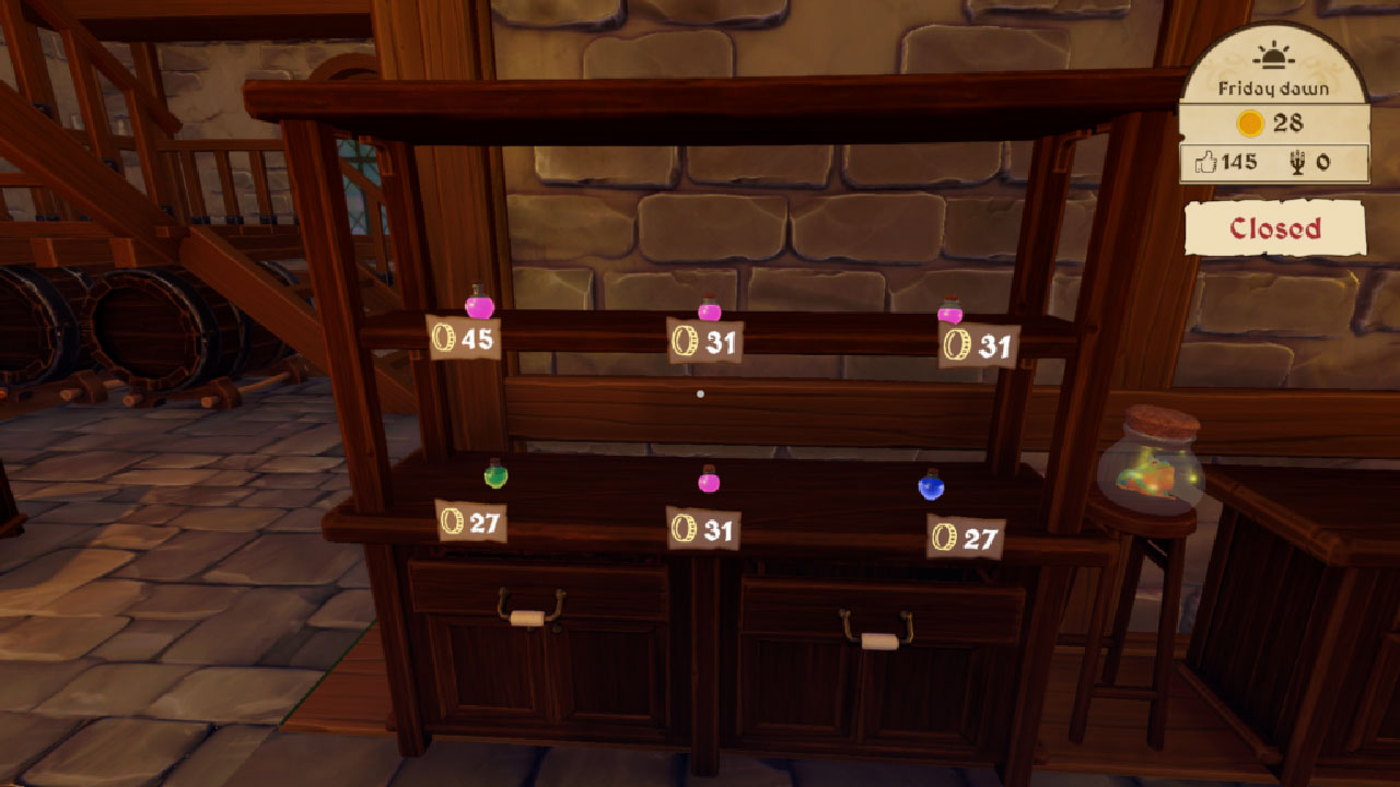 این قسمت مورد علاقه من از بازی بود و فکر می کنم اگر Potion Shop Simulator بیشتر روی آن تمرکز می کرد، خیلی بهتر عمل می کرد. در این زمینه می توانم بازی Supermarket Simulator را مثال بزنم که از سیستم ماموریتها استفاده نمیکرد و البته بسیار محبوب بود، اما Potion Shop Simulator این فرصت را دارد که از آن پیشی بگیرد و در میان جمعیت بازیهای دنج فانتزی مشابه، جذاب باشد.