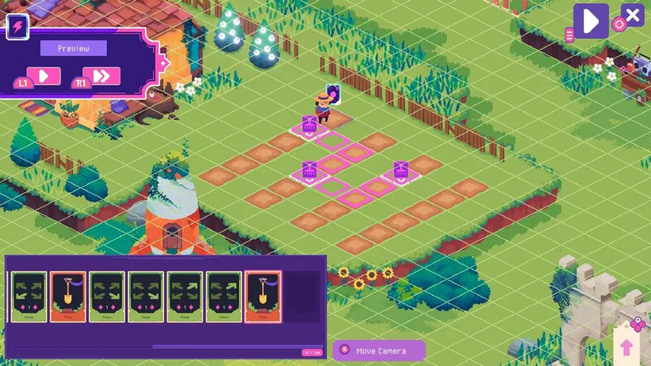 از آنجایی که سازهها نمیتوانند به تنهایی عمل کنند، شما باید از طریق یکسری کارتهای تاروت به آنها دستور دهید. این کارتها با همان منطق کدنویسی کار میکنند و در واقع، بازی کمی در مورد این موضوع با شما شوخی میکند. شما باید حرکت و عمل خود را به روشی منطقی ترتیب دهید که به اثر دلخواه خود برسید. با پیشرفت، میتوانید کارتهایی پیدا کنید که به سازههای آرکانا دستور میدهند تا در مزارع خاص اقداماتی انجام دهند، کارهایی را بر اساس مرحله رشد یک محصول انجام دهند – زیرا گیاهان در مراحل مختلف محصولات جانبی متفاوتی تولید میکنند و چندین مورد دیگر.