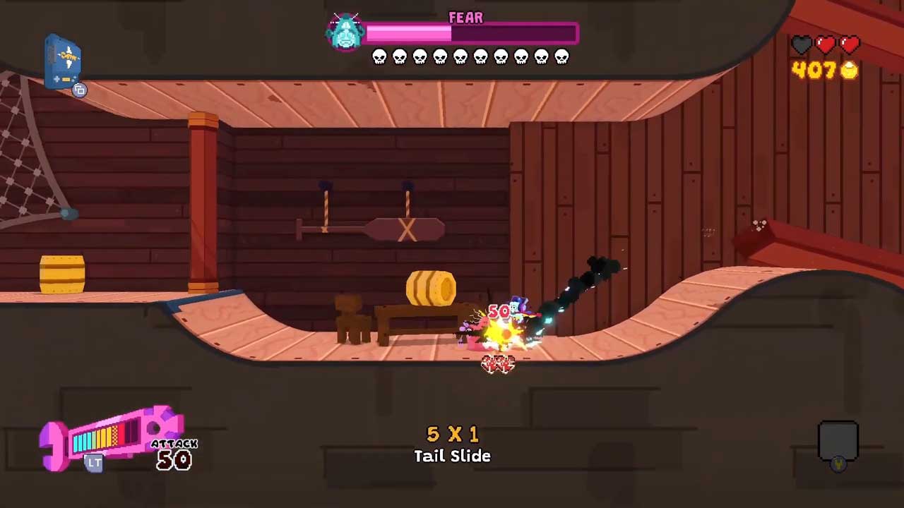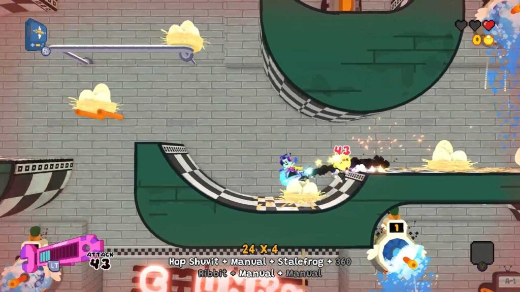 از زمان انتشار بازی Tony Hawk’s Pro Skater در سال 1999، این بازی‌ها گوشه‌ای از هر دو سبک را ایجاد کرده‌اند و روی ارائه مراحل باز مملو از رمپ‌ها، ریل‌ها و شکاف‌ها تاکید می‌کنند تا بازیکن را تشویق کند تا با محیط‌های سخت‌تر مقابله کند تا تسلط خود را در بازی به نمایش بگذارد. Seafrog تمام عناصر یک بازی کلاسیک اسکیت دو بعدی را روی کاغذ دارد، و از همان ترفندهایی استفاده کرده که OlliOlli World را بسیار لذت بخش کرده است. با این حال، یک عنصر Metroidvania در طراحی سطح آن وجود دارد که آن را متمایز می کند، اما شاید کمی از سایر عناوین مشابه در کلاس خود عقب تر باشد.