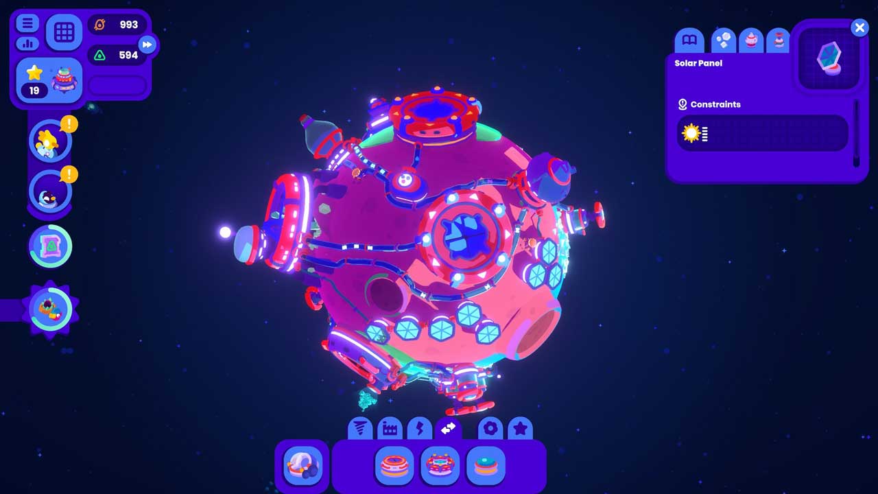 بنابراین، ایجاد درست ساختمانها در مکانهای صحیح، جمعآوری منابع مناسب برای انجام ماموریتها و حتی تبادل برخی از منابع خود از یک سیارک به سیارک دیگر به تصمیمات شما بستگی دارد. بسیاری از اینها مانند حل یک پازل است؛ مثلا در قسمتی از بازی، لولههایی از یک دستگاه به دستگاه دیگر خواهید داشت، اما متوجهمی شوید که این لولهها نمیتوانند از یکدیگر عبور کنند، بنابراین تشخیص طرح هر سیارک به شما بستگی دارد. همچنین باید پیگیری کنید که به کدام منبع در کجا نیاز دارید، زیرا بسیاری از منابع را نمیتوان به طور طبیعی پیدا کرد، بلکه باید با ترکیب منابع دیگر ساخته شوند.