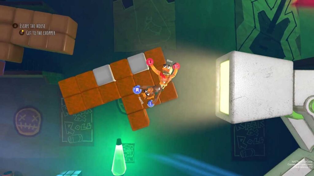 حرکت غیرقابل پیشبینی و لرزان مدل های اسباببازی دو سر شما منبع اصلی کمدی است. تماشای لیز خوردن، افتادن و کشیدن بازیکن دیگر پس از یک صعود موفقیتآمیز، یک شورش است. تا حدی که می توان گفت این بازی برای خنده و لحظات مناسب برای استریمرها ساخته شده است. در حالی که اتاقها متنوع هستند، حلقه گیمپلی لحظه به لحظه شامل گرفتن، تاب خوردن، لیز خوردن و افتادن به ابتدای یک بخش دشوار است. اینکه چقدر خوب این تکرار را تحمل میکنید، تجربه شما را تعریف میکند.