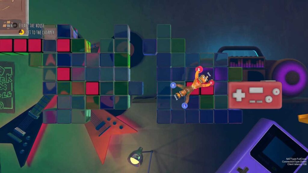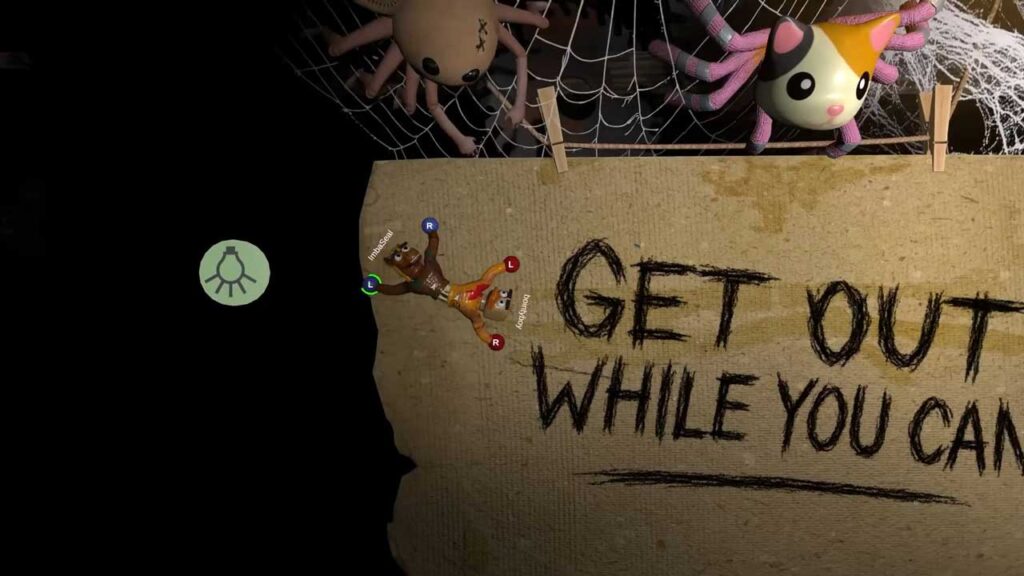البته، ایده اصلی بازی روی کاغذ آسان به نظر میرسد. با این حال، واقعیت تلخ این است با وجود اینکه بازی پر از وسایل موقت به ظاهر بیضرر و وسایل ضروری جعبه اسباببازی است، اما اینطور نیست و شما را مجبور میکند که با همراهتان هماهنگ کار کنید و از طریق تمرینهای سخت و صبر فراوان، با عروسک پارچهای از میان مجموعهای از موانع و دیگر وسایل عجیب و غریب عبور کنید. یک بازیکن از یک دست برای تاب دادن استفاده میکند و بازیکن دیگر از دست دیگر برای گرفتن یک جای پا و غیره و غیره. و اگر فکر میکنید این کمی آسان به نظر میرسد، خب، اینطور نیست و متأسفانه، اشتباه میکنید.