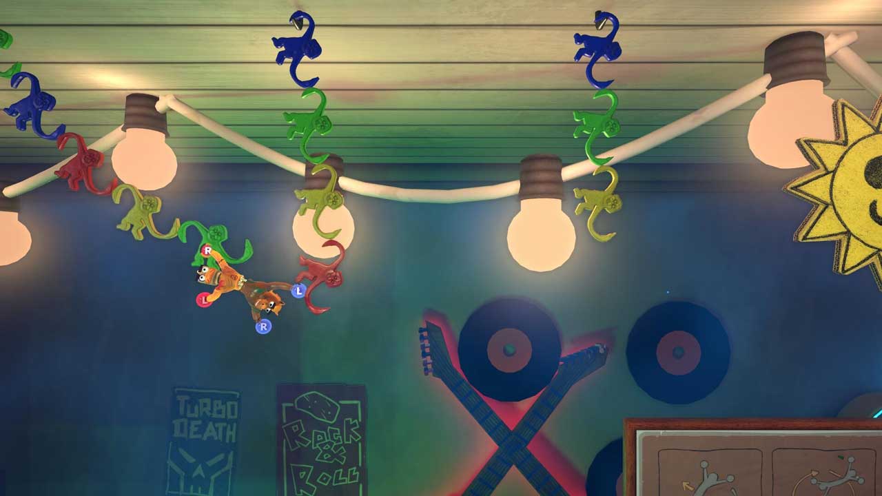 البته، ایده اصلی بازی روی کاغذ آسان به نظر میرسد. با این حال، واقعیت تلخ این است با وجود اینکه بازی پر از وسایل موقت به ظاهر بیضرر و وسایل ضروری جعبه اسباببازی است، اما اینطور نیست و شما را مجبور میکند که با همراهتان هماهنگ کار کنید و از طریق تمرینهای سخت و صبر فراوان، با عروسک پارچهای از میان مجموعهای از موانع و دیگر وسایل عجیب و غریب عبور کنید. یک بازیکن از یک دست برای تاب دادن استفاده میکند و بازیکن دیگر از دست دیگر برای گرفتن یک جای پا و غیره و غیره. و اگر فکر میکنید این کمی آسان به نظر میرسد، خب، اینطور نیست و متأسفانه، اشتباه میکنید.