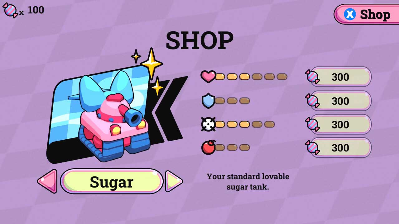 در مجموع حدود 12 تانک مختلف برای انتخاب وجود دارد که هر کدام از لحاظ فاکتورهایی مانند قدرت دفاعی و میزان سلامتی با یکدیگر متفاوت اند. این مقدار تنوع برای یک بازی مستقل کوچک مانند Sugar Tanks واقعا عالی است. با اینکه گیم پلی جذابیت خود را حفظ می کند، ولی همچنان مشکل یکنواخت شدن را دارد و امکان دارد بازیکنان جوان تر را سریعا خسته کند.