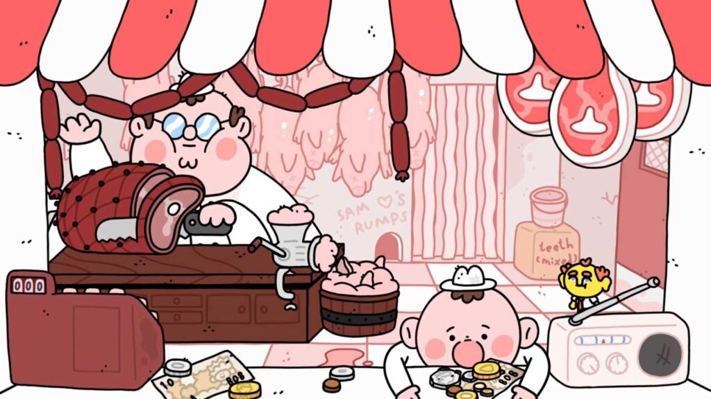 توصیف کردن بازی Thank Goodness You’re Here! واقعا سخت است. بیشک این بازی مستقل یک کمدی کارتونی مطلق است، اما هیچ روایت یا راز مرکزی برای پیشبرد داستان وجود ندارد. همچنین از دامهای معمول بازیهای اشاره و کلیک معمایی اجتناب میکند و در عوض، از طریق مجموعهای از موقعیتهای مرتبط که ریتم بازی را تند نگه میدارند و شوخیها را به دنبال دارند، پیش میرود.