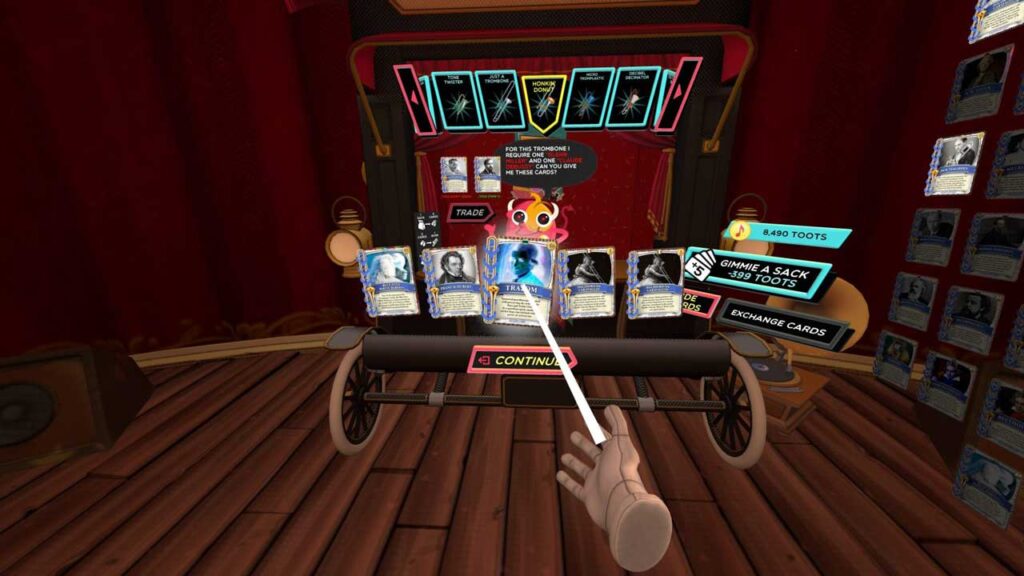 هرچه بهتر بازی کنید، امتیاز بیشتری کسب خواهید کرد که میتوانید از آنها برای خرید بستههای کارت در فروشگاه کارت استفاده کنید. هر بسته کارت شامل چهار کارت تصادفی است که میتوانید آنها را با یک ترومبون جدید در فروشگاه معامله کنید. هر ترومبون برای باز کردن قفل به دو کارت خاص نیاز دارد، بنابراین کسب امتیاز کافی برای باز کردن همه چیز چند ساعت طول میکشد. خوشبختانه، میتوانید کارتهایی را که سه یا چند نسخه از آنها را دارید با کارت دیگری که در حال حاضر در دست ندارید، معامله کنید، که به شما کمک میکند کارتهایی را که در باز کردن بستههای کارت کور شانسی برای به دست آوردن آنها ندارید، به دست آورید.