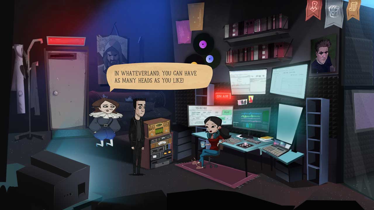 از لحاظ گیم پلی، برخلاف آنچه که معمولاً از یک بازی ماجراجویی نقطه و کلیک انتظار دارید، Whateverland رویکردی غیرخطی دارد. این نه تنها نویدبخش قابلیت پخش مجدد است، بلکه به این معنی است که راههای متعددی برای نزدیک شدن به موانعی که بر سر راه شما قرار میگیرند وجود دارد و به طور مثال اگر در یک پازل گیر کردید، میتوانید معمولاً از محل ذخیره قبلی برگردید تا کارها را به روش دیگری امتحان کنید. البته مشکل اینجاست شما هرگز نمی دانید که چنین پازلی چه زمانی ظاهر می شود و نمی توانید تصمیمات قبلی را لغو کنید، بنابراین سیو کردن در اغلب اوقات جزو اموری است که باید به آن عادت کنید، به خصوص اگر با یک مشکل یا باگ مواجه شوید.