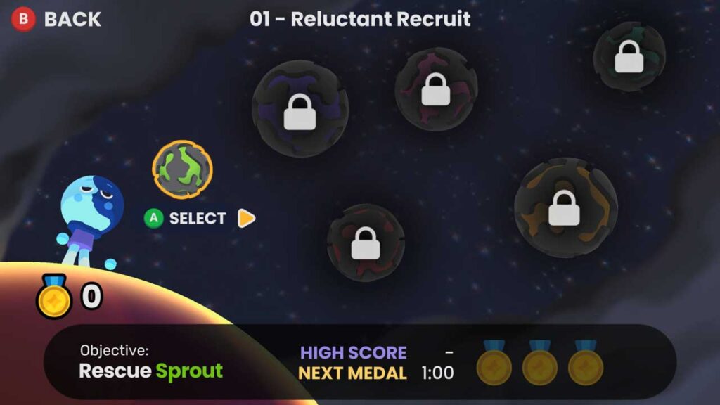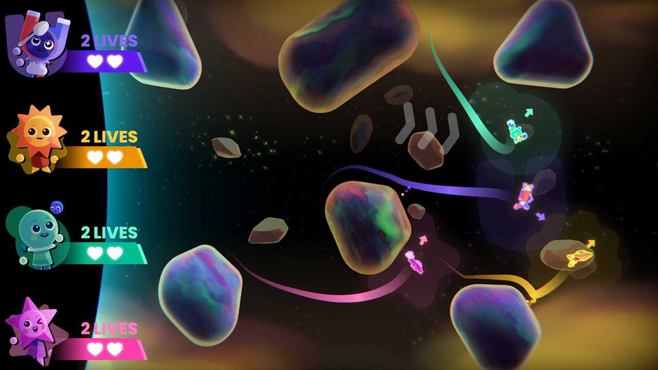 تجربه تک نفره دارای سه حالت بازی متمایز است. Nebula Nab به شما وظیفه میدهد تا در میان سیارات بدوید تا شکلها را با شکافهای صحیح آنها جمعآوری کرده و مطابقت دهید. Hole in One یک پیچ و تاب با مضمون فضایی در گلف ارائه می دهد که با موانع آسمانی کامل می شود. در نهایت، Comet Collect فوتبال را در یک محیط کیهانی دوباره اختراع می کند و شما را برای گلزنی در مناطق تعیین شده به چالش می کشد.