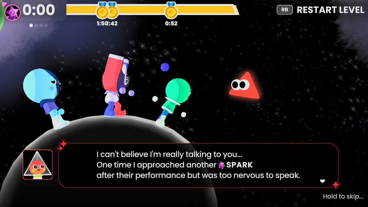 به طور خلاصه، در حالی که روایت داستانی به عنوان یک پس زمینه کاربردی عمل می کند، در نهایت فراموش شدنی است. همانطور که گفته شد، خود داستان جذابیت دارد: قبل از اینکه جهان وجود داشته باشد، ارواح فضایی آسمانی، تجسم کیهانی مفاهیمی مانند طبیعت (Sprout)، نور (Prism) و ماه (Luna)، بازی های کهکشان را به عنوان یک انحراف در حالی که زندگی را شکل می دهند، ایجاد کردند. با این حال، در اینجا انتظار روایت های منشعب یا خطوط داستانی عمیق را نداشته باشید.