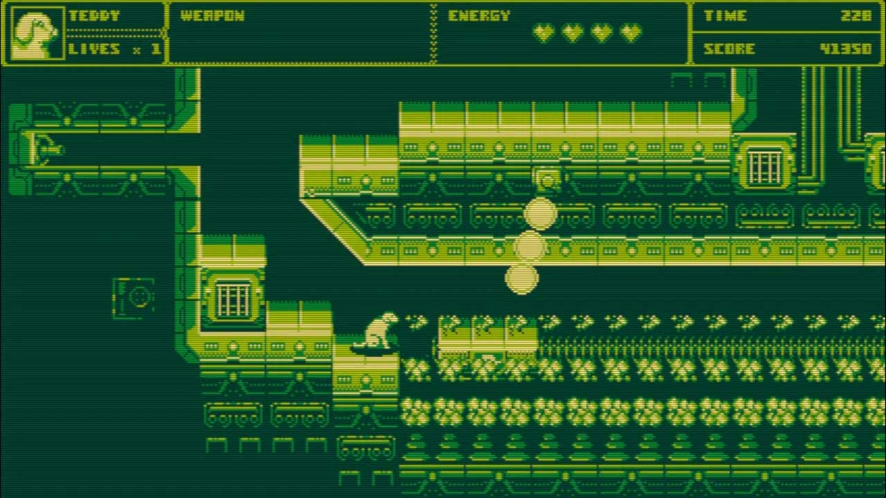 کاملا واضح است که گرافیک پیکسلی و پالت های رنگی بازی Wild Dogs الهام گرفته شده از بازیهای خاطره انگیز کنسول دستی Game Boy هستند که را می توان ترکیب رنگ ها را در حین انجام بازی نیز تغییر داد، که این تفاوت رنگی در تصاویری که در این مقاله قرار داده ایم، کاملا نمایان هستند. این ویژگی واقعا خوب است که هر زمان که می خواهید رنگ ها را تغییر دهید – البته اگر مایل به تغییر هستید. تنظیمات مخصوص نمایشگرهای CRT و فیلتر آن نیز بسیار خوب شکل گرفته است، با خطوط اسکن و انحنا برای علاقه مندان به سرگرم شدن.