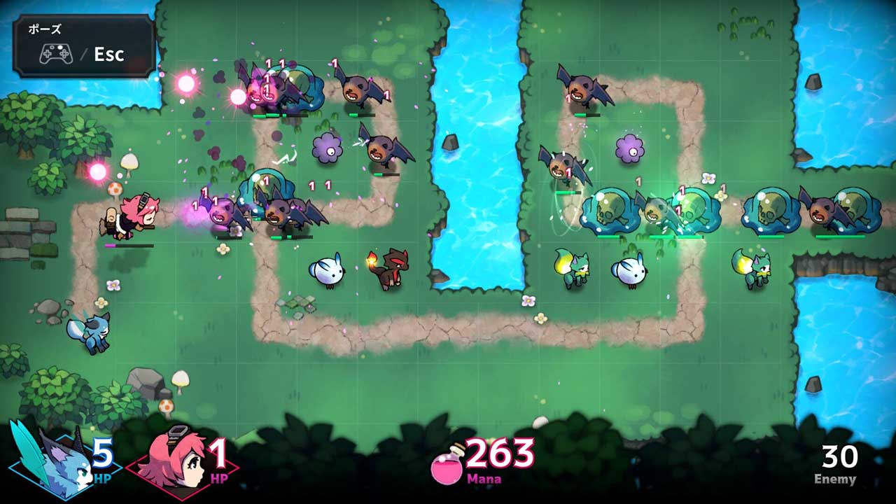 پس از اینکه مهارت های خود را ارتقا دادید و تقویت نمودید، قدرت واقعی خود در نبردها را به دست خواهید آورد، بنابراین می توانید برجهای بیشتری را در سراسر مرحله قرار دهید. در نهایت با سکههای طلای مازاد مواجه خواهید شد و از آنجایی که میتوانید از سکههای طلا برای ایجاد موادی استفاده کنید که کمبود دارند، تمام پیشرفتها قبل از اتمام یک مرحله به حداکثر میرسد. می توانید این سکه های اضافی را در بخش ساخت و ساز بازی مصرف نمایید و در بخش کیمیاگری، معجون های تقویتی ایجاد کنید که در نبردهای بازی شما را یاری می کنند. از آنجایی که تقویت کاراکترها آسان است، فکر کردم اتمام مراحل بازی آسان باشد، اما دشمنان و مخصوصا باسها سخت هستند. بسته به مرحله، اگر برجها را به درستی در مکان مناسب قرار ندهید، شک نکنید که شکست خواهید خورد، زیرا به تنهایی نمی توانید از کشتن دشمنان برآیید. پیدا کردن مکان مناسب هیجان واقعی گیم پلی است، اما همچنین احضار ارواح در حین کنترل تیا، که حداکثر قدرت شلیک را دارد، برای شکست دادن هیولاها و اجتناب از گلوله های دشمن، دشوار است.